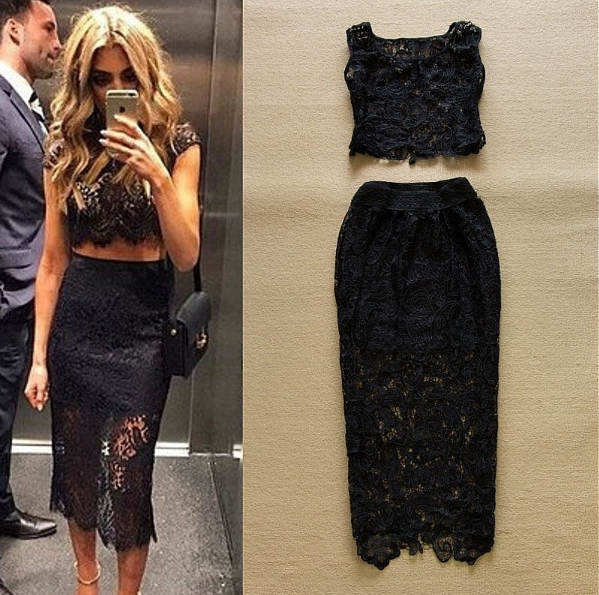 Asymmetrisches zweiteiliges Spitzenkleid für Damen