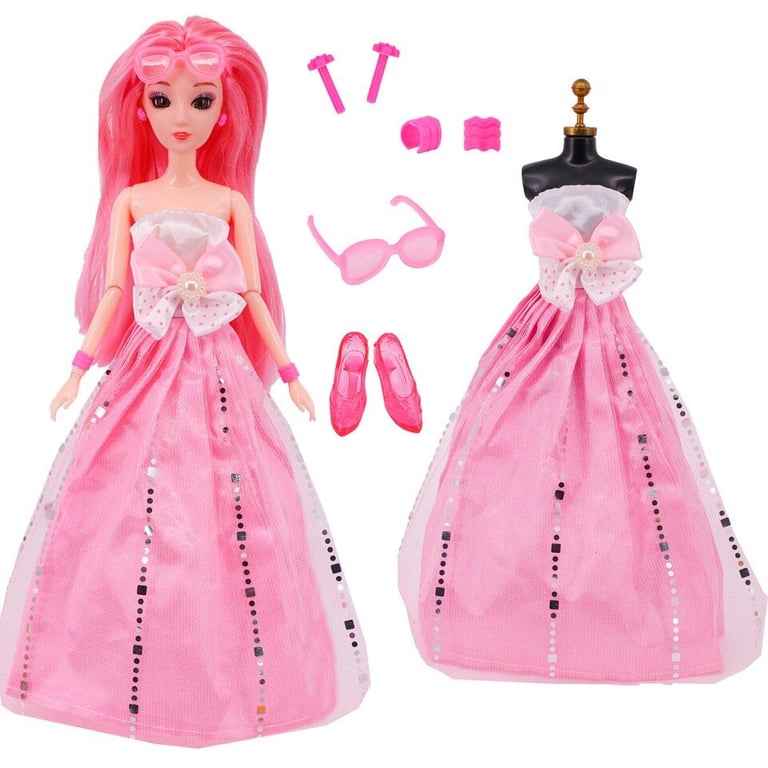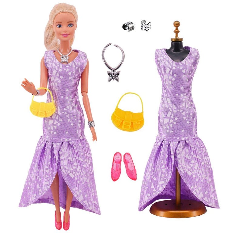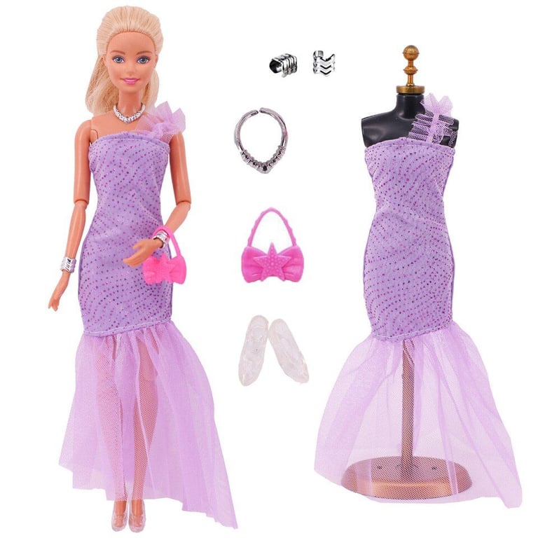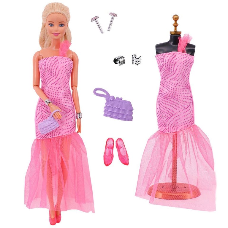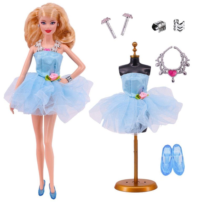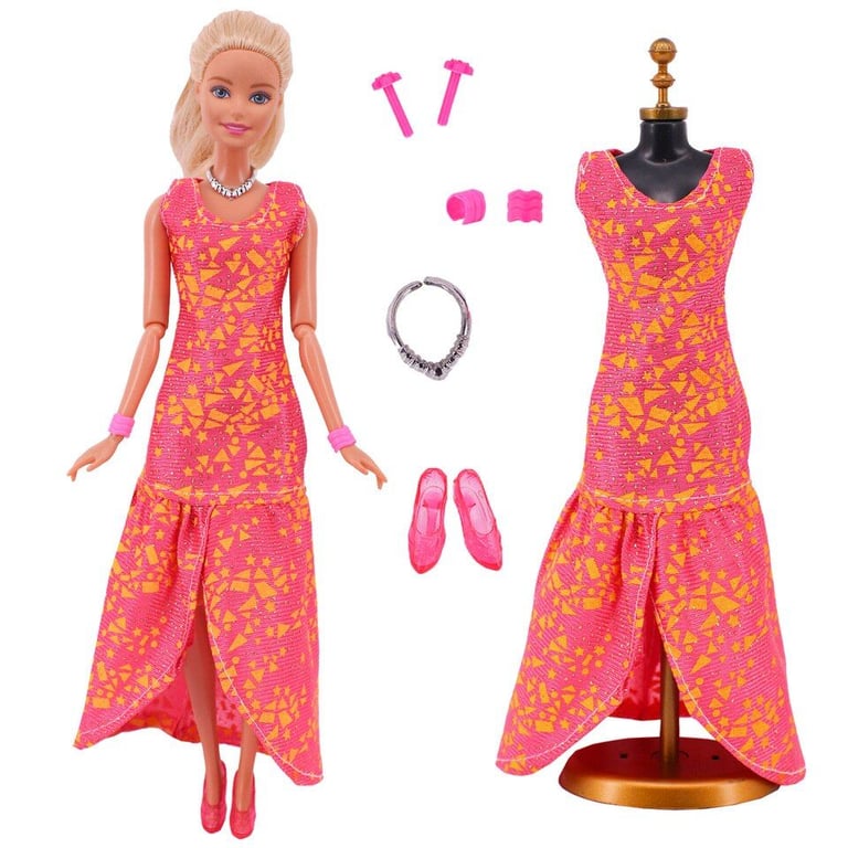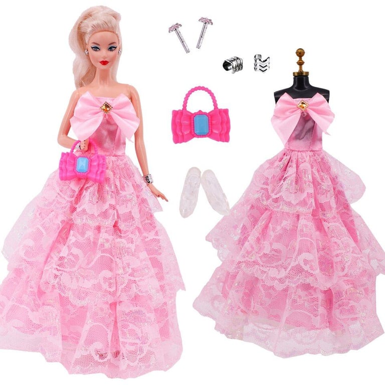 Balloutfit für Barbie-Puppe – Kleid + Schmuck
