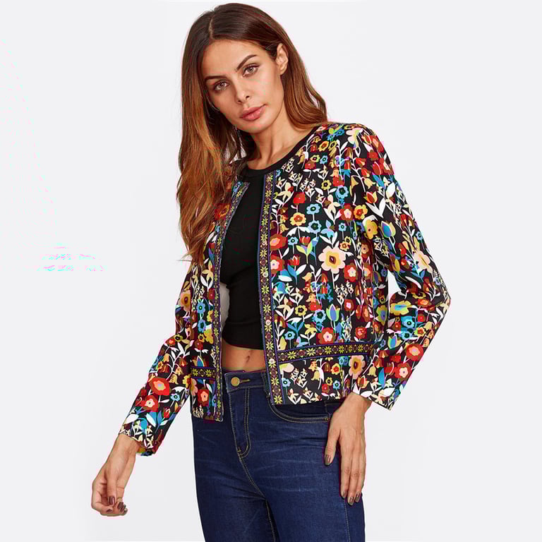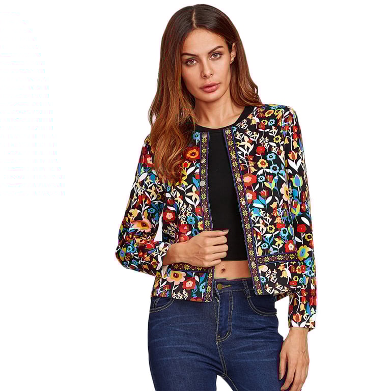 Bunt gemusterter kurzer Damenblazer mit Blumenmuster