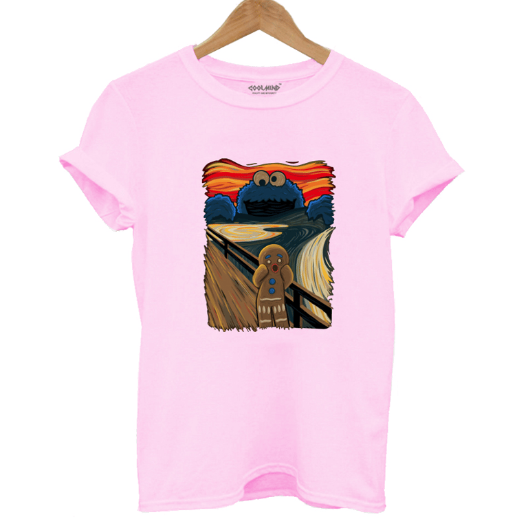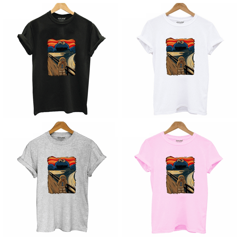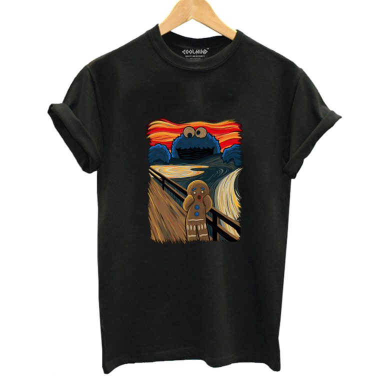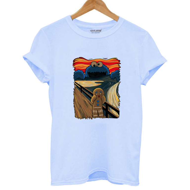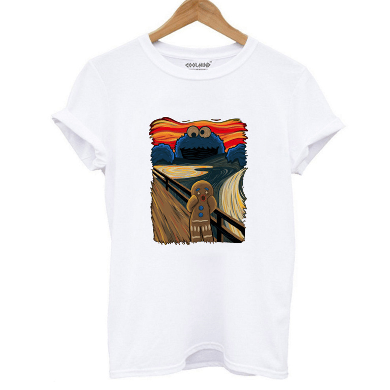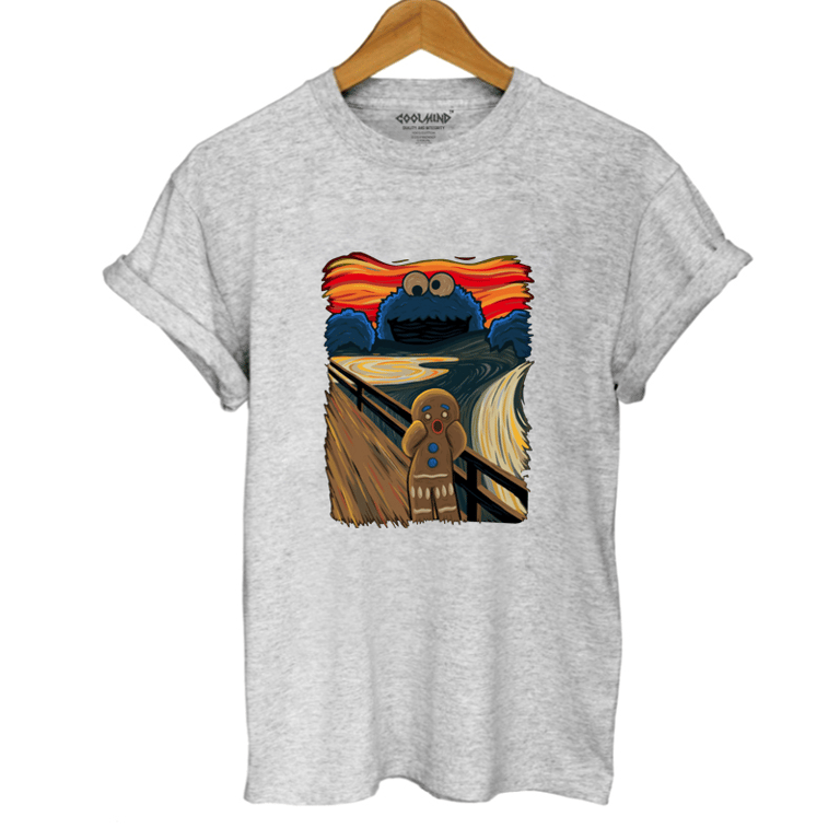 Stylisches T-Shirt mit einer Zusammenarbeit zwischen dem Lebkuchenmann aus Shrek und Cookie Monster. Ein sehr interessantes und originelles T-Shirt, das perfekt sitzt und in dem Sie sich wirklich großartig fühlen werden.