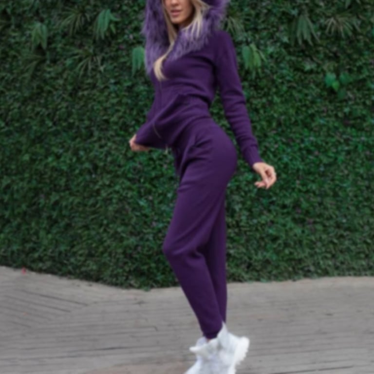 Stylischer Damenanzug mit Jogginghose und Sweatshirt, den jede Frau wegen seines Komforts lieben wird. Der Anzug ist nicht nur bequem, sondern auch von sehr guter Qualität und warm gefüttert.