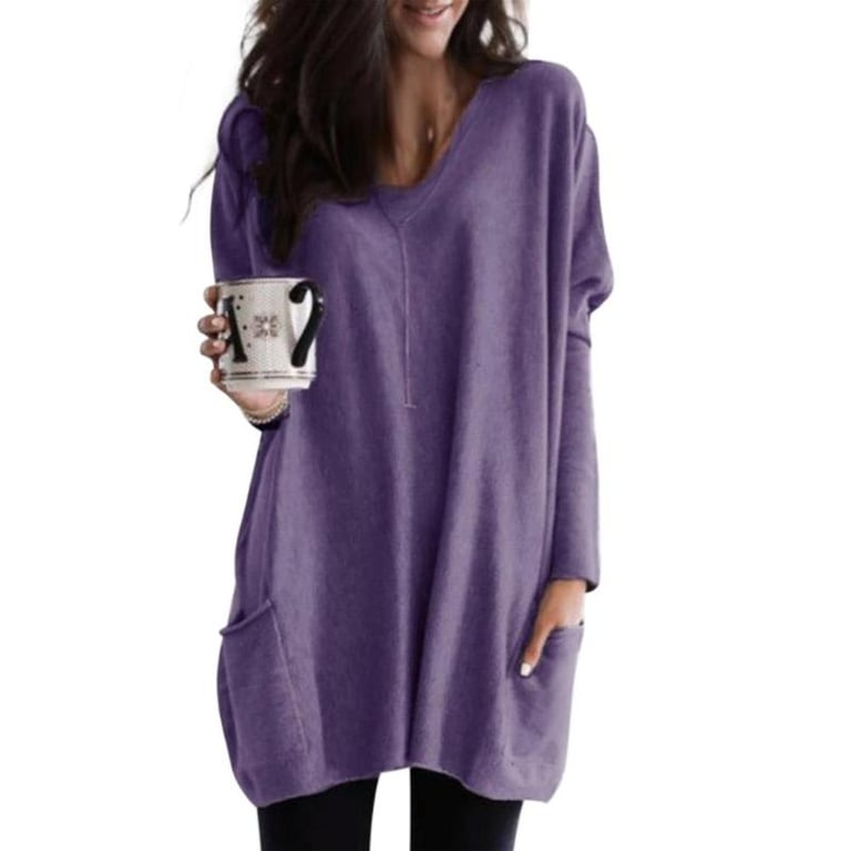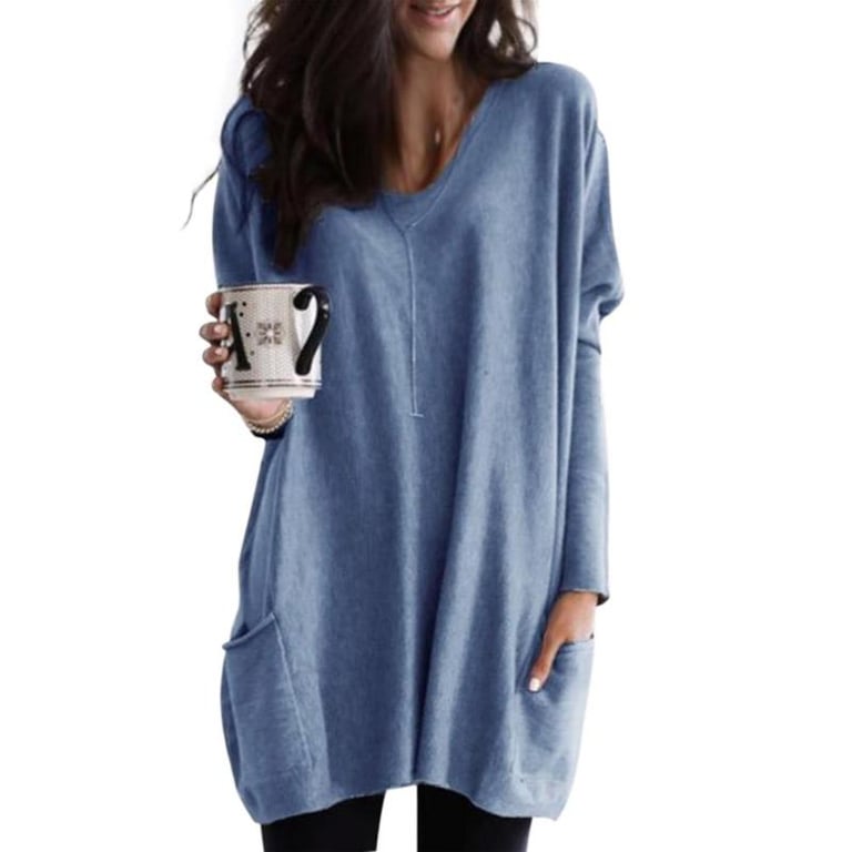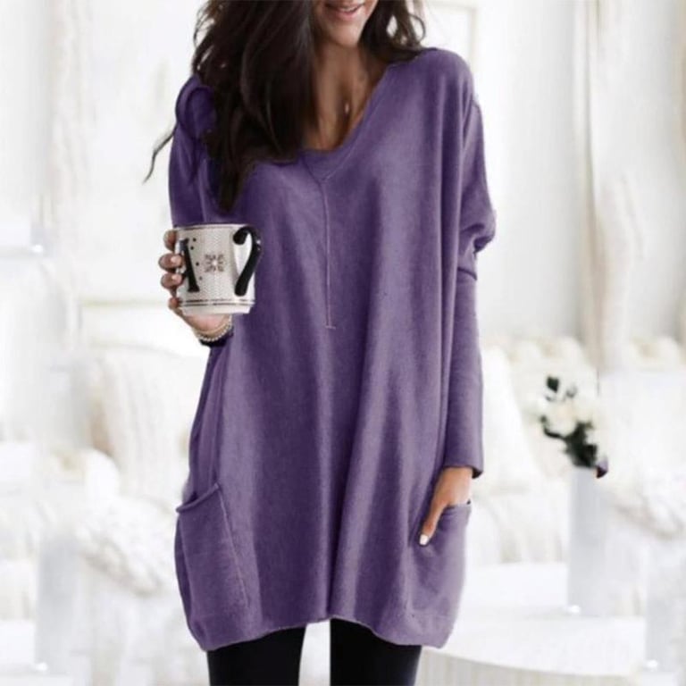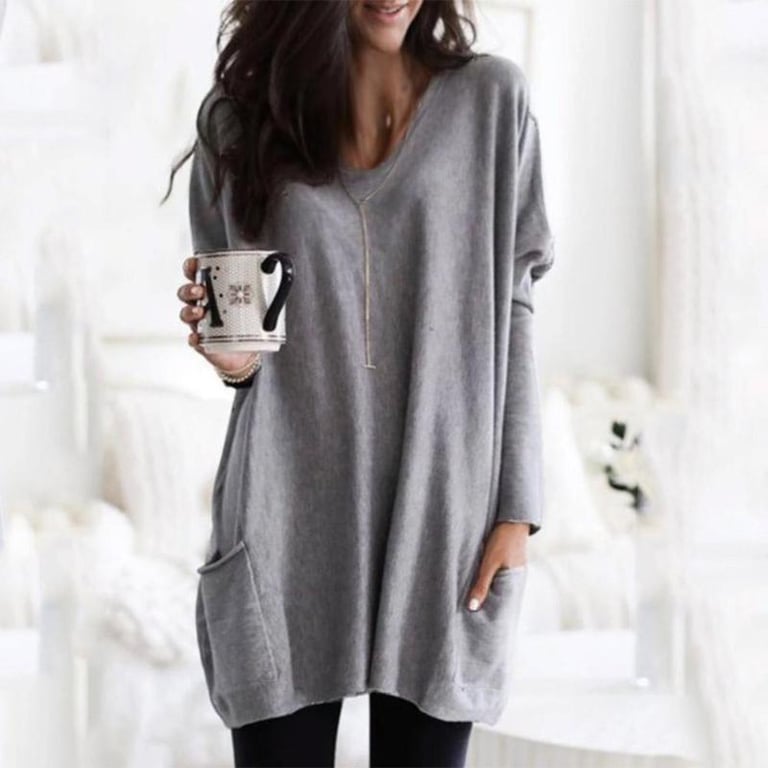 Damen elegantes modisches langes Top mit langen Ärmeln und Taschen. Geeignet für den täglichen Gebrauch drinnen und draußen. Das Top ist die ideale Wahl für den Herbst oder Winter.