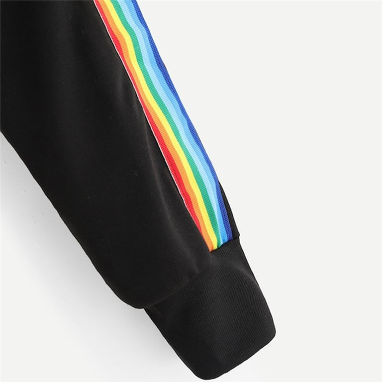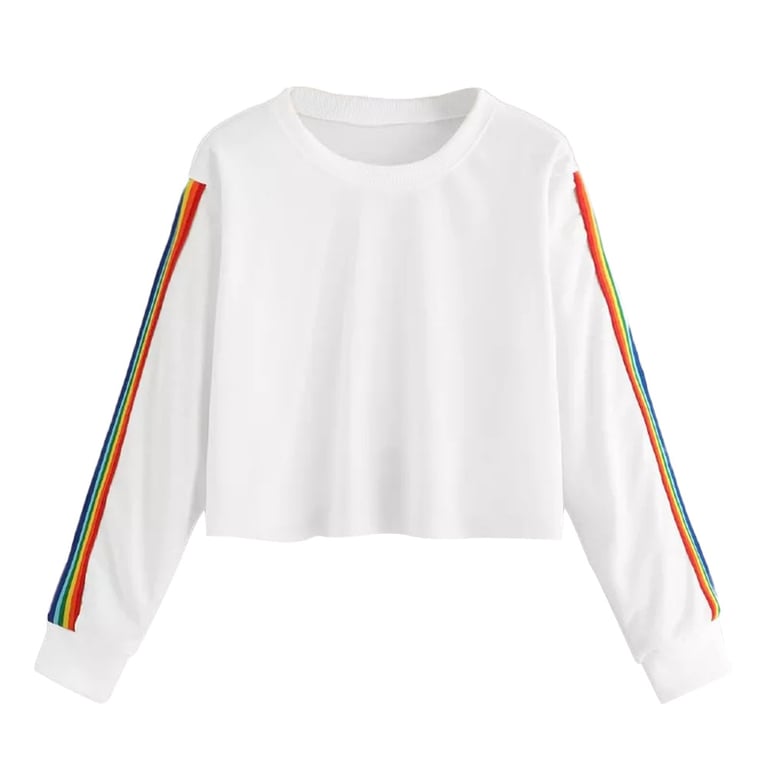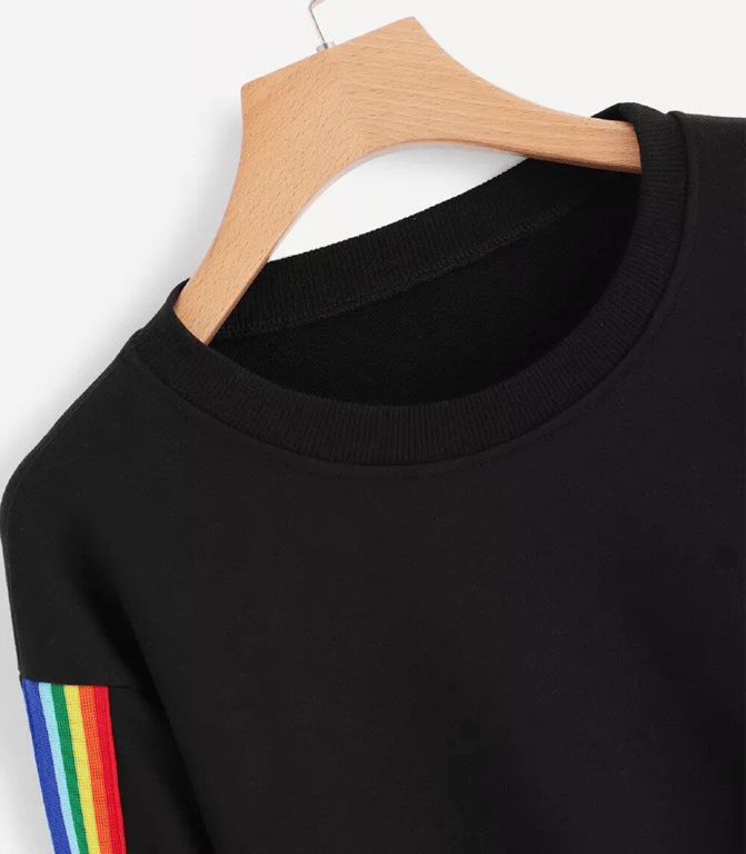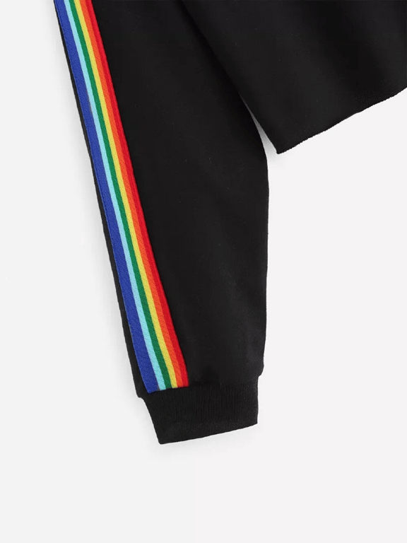 Das Sweatshirt ist mit Regenbogenstreifen an den Ärmeln verziert und der Crop-Look verleiht dem Sweatshirt einen besonderen Charme.