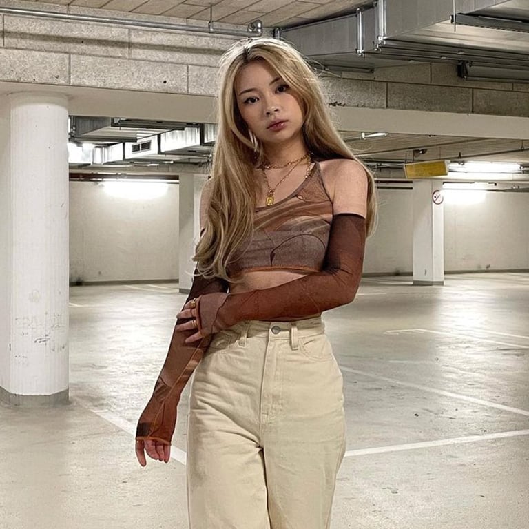 Damen Crop-Top mit Halsband und fallenden Ärmeln