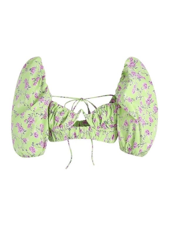 Damen Crop Top mit Rüschensäumen und Vintage-Druck