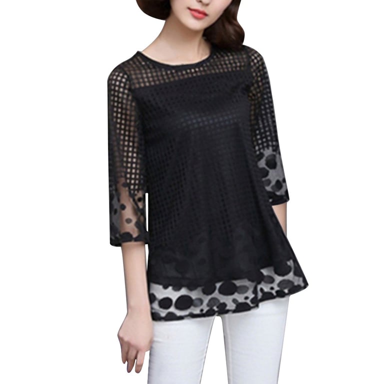Damen elegante Bluse, 3/4 Ärmel, runder Ausschnitt, A-Linien-Schnitt.