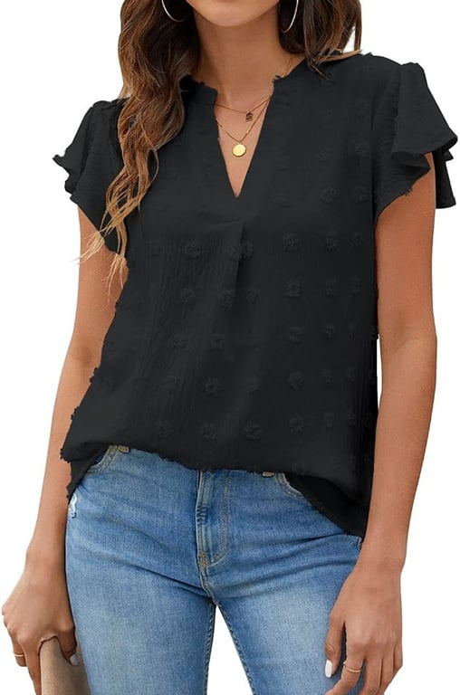 Damen elegante Bluse mit kurzen Ärmeln und V-Ausschnitt