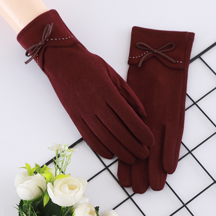 Damen elegante fingerlose warme Handschuhe mit einfacher Schleife