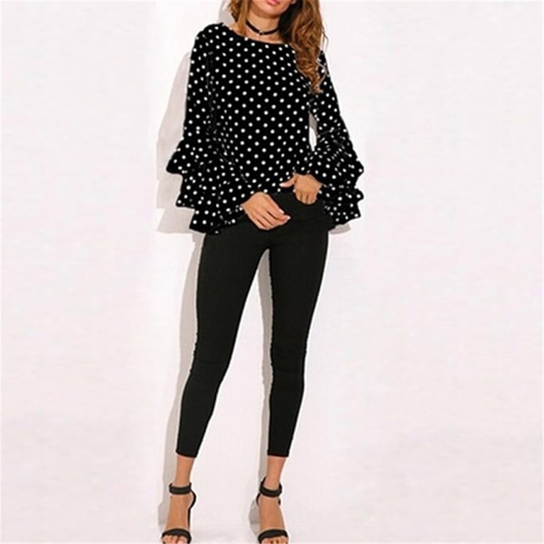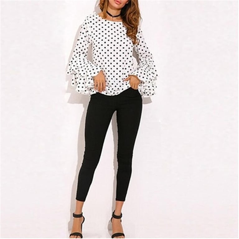 Damen elegante gepunktete Bluse mit Rüschenärmeln