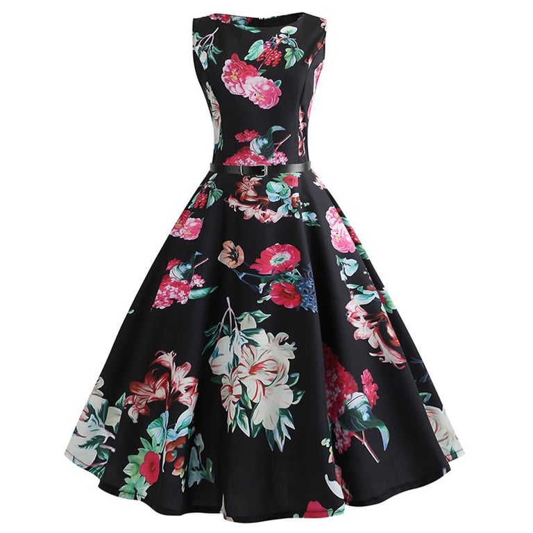 Sehr stilvolles Kleid mit schönem Blumenmuster. Kleiden Sie sich in den Sommerwellen.