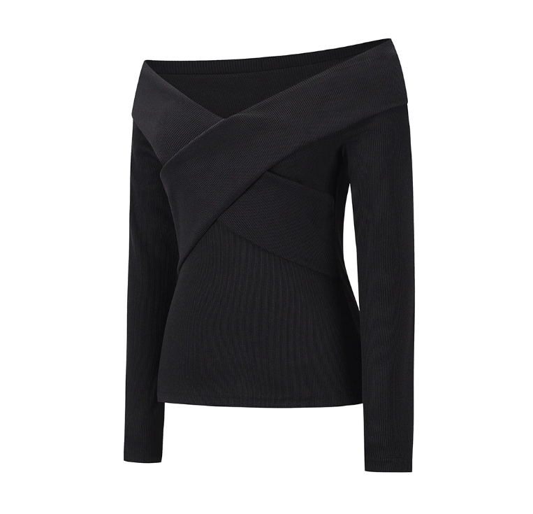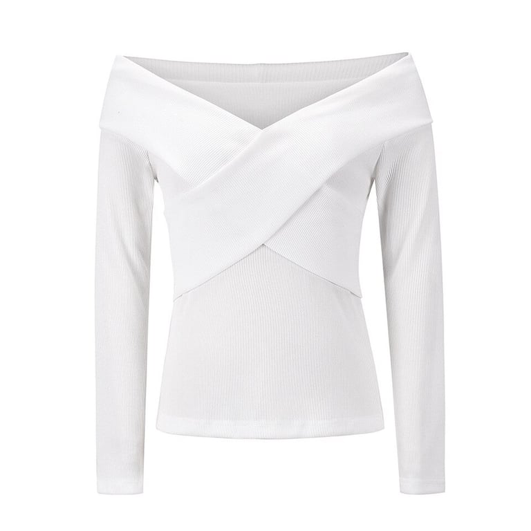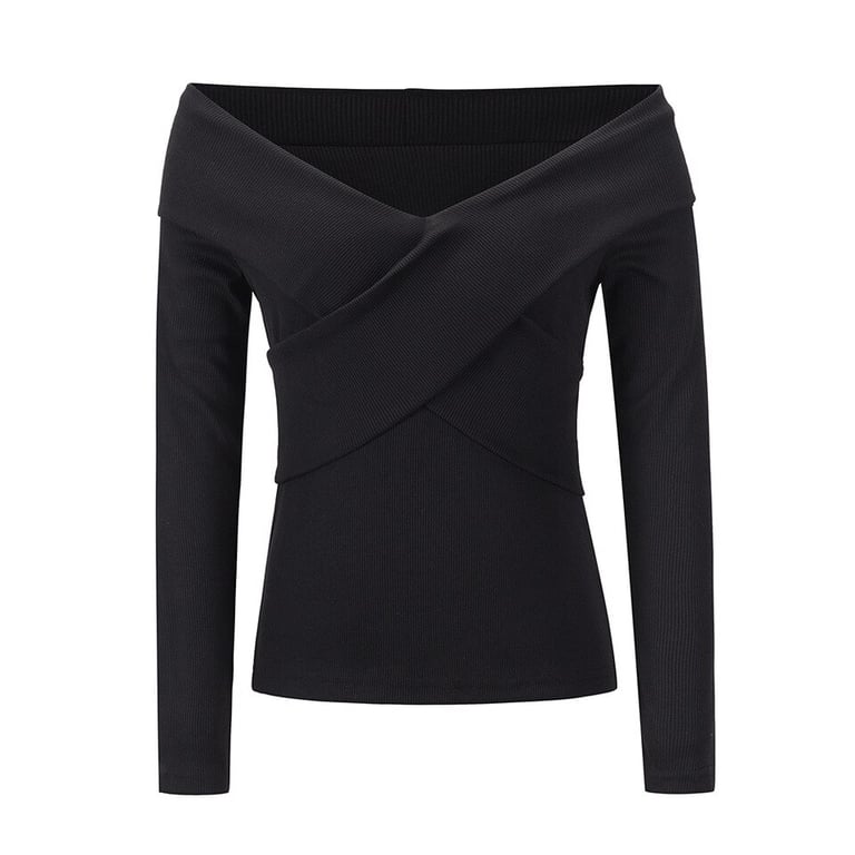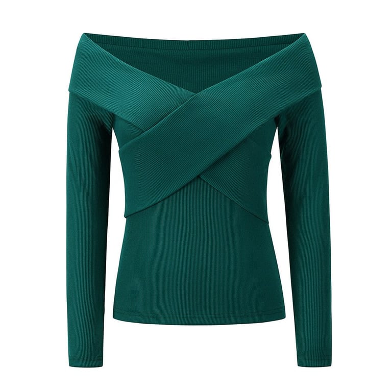 Damen eleganter Pullover mit langen Ärmeln und Überkreuzung am Dekolleté
