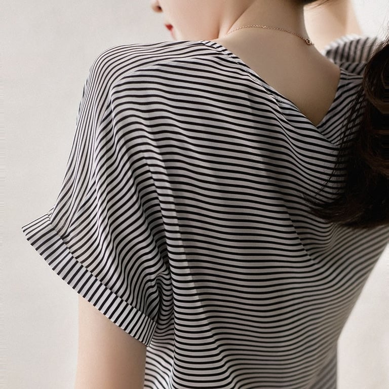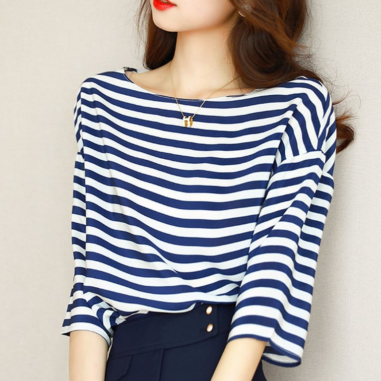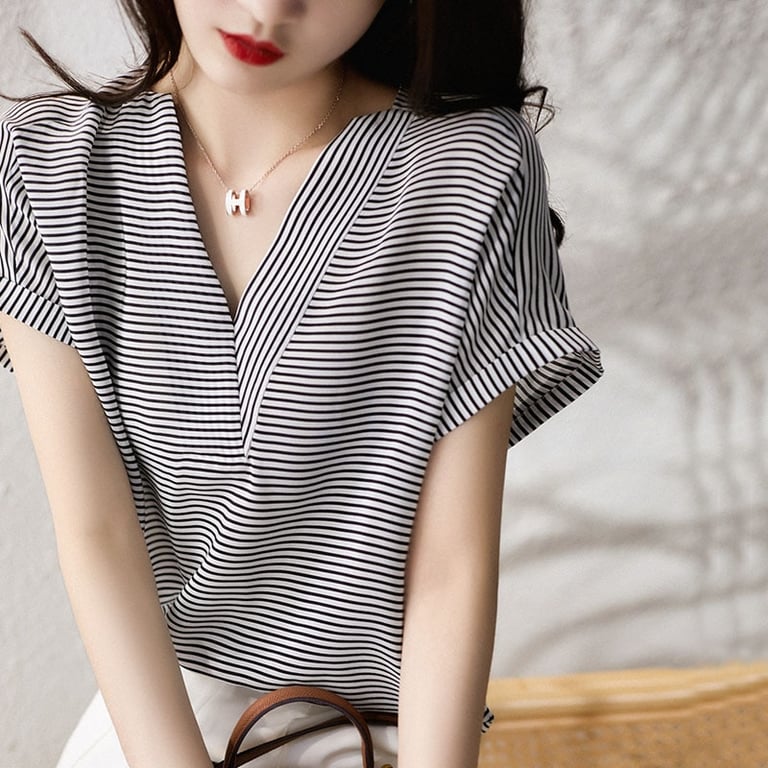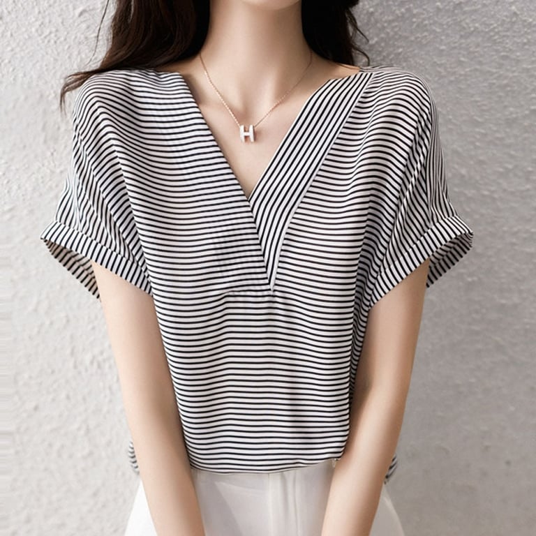 Damen elegantes gestreiftes T-Shirt mit kurzen Ärmeln