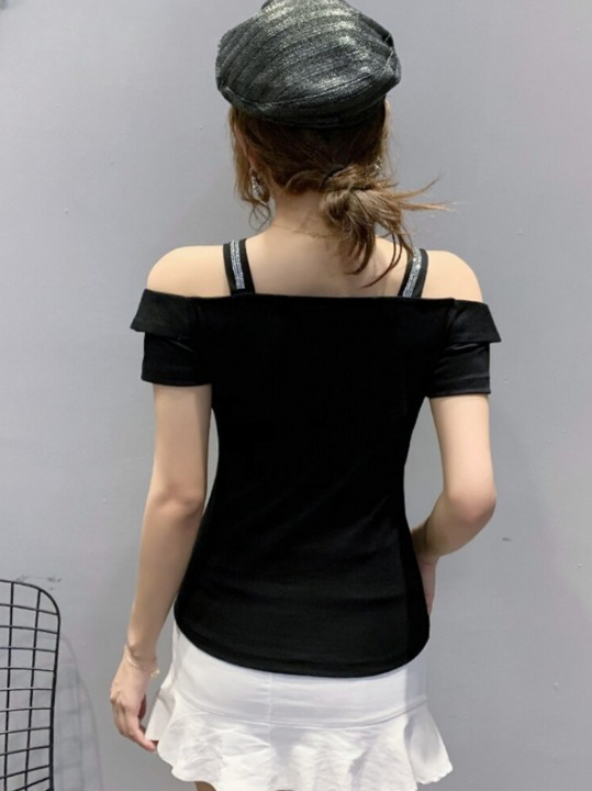 Damen elegantes Trägershirt mit Zirkonverzierung
