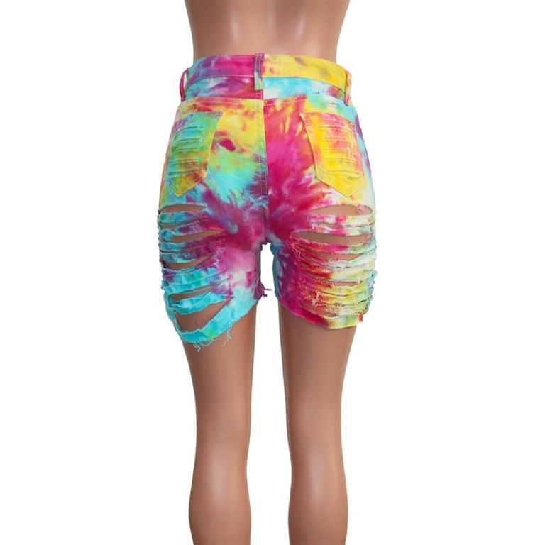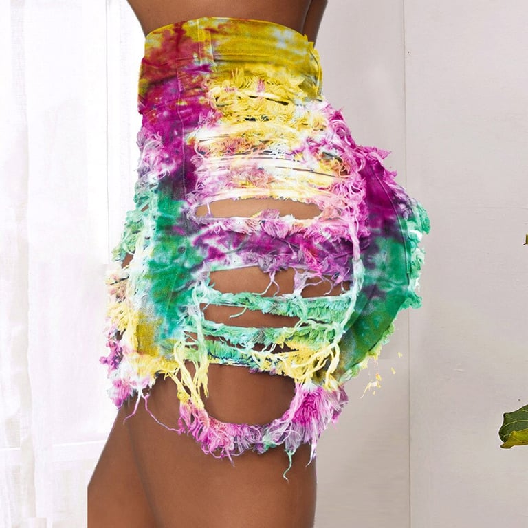 Damenfarbene, durchbrochene Jeansshorts mit hoher Taille