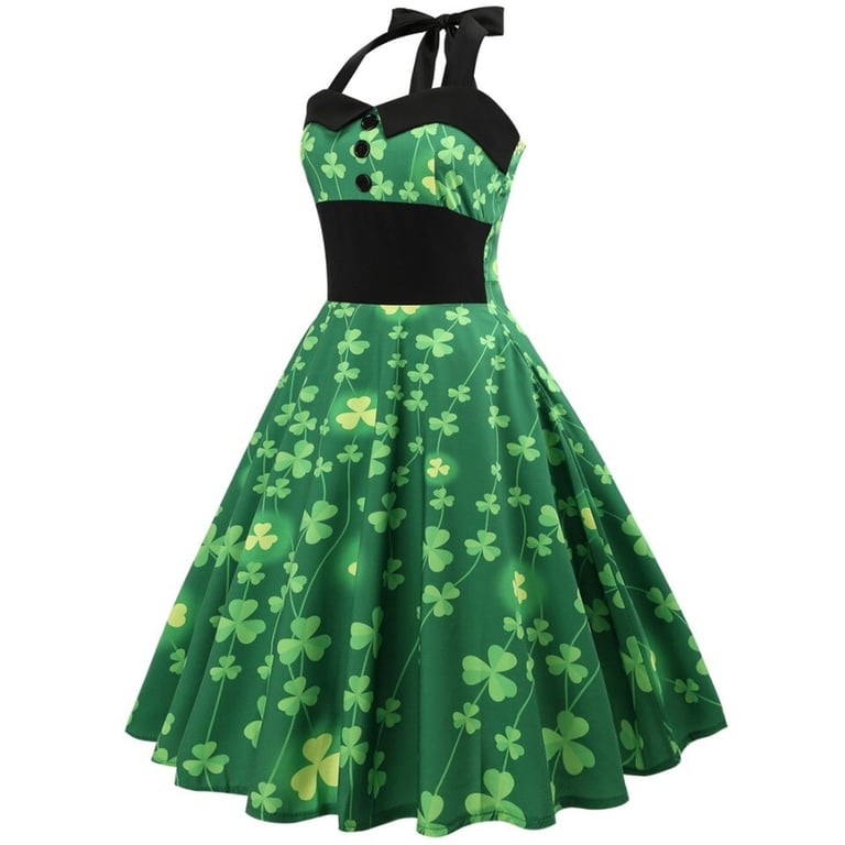 Damenfestliche A-Linienkleider mit Trägern und Kleeblattmotiv