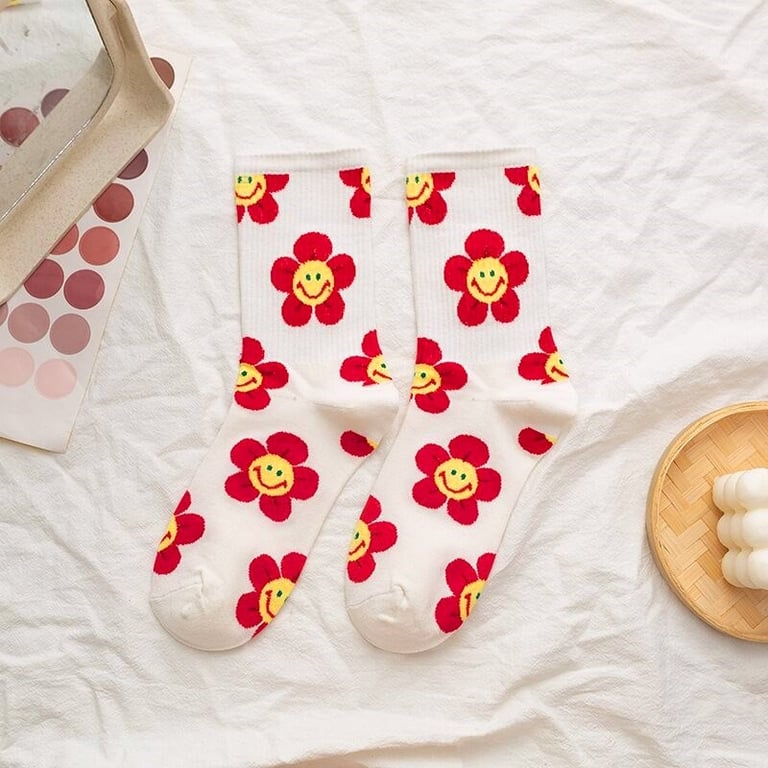 Damen hohe Socken mit retro Blumenmotiv