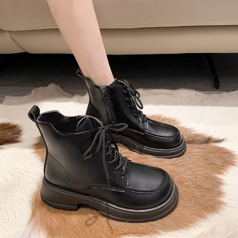 Damen Kunstleder Schnürstiefel mit robuster Plattform Paula