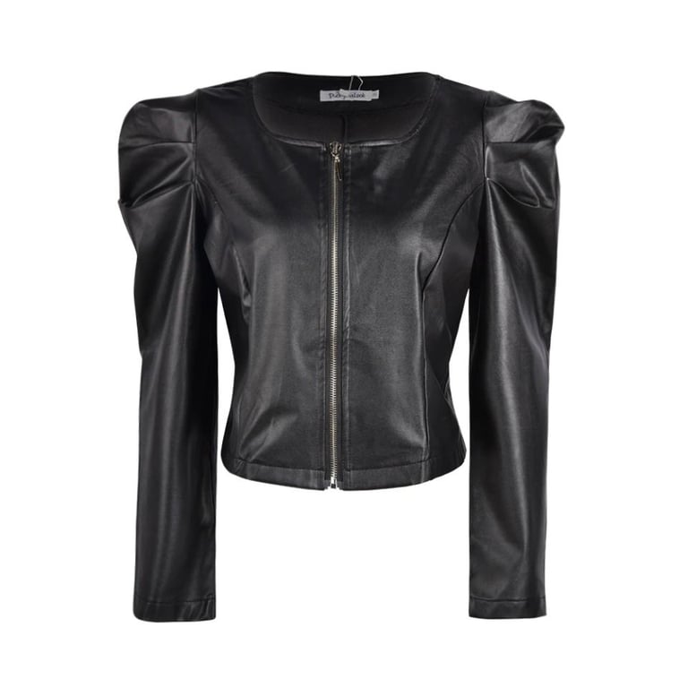 Damen Kunstlederjacke mit Lanternenärmeln an der Schulter