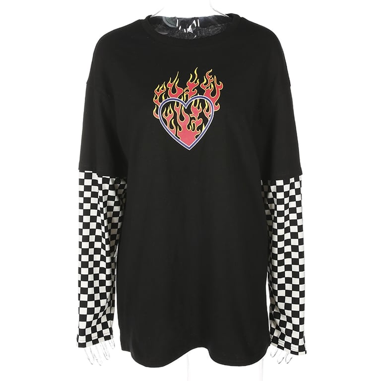 • Baumwollshirt mit langen Ärmeln, Druck eines brennenden Herzens auf