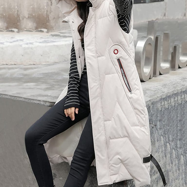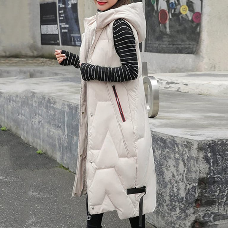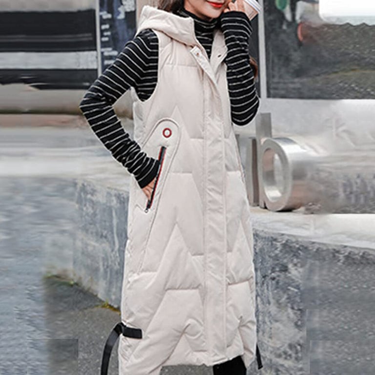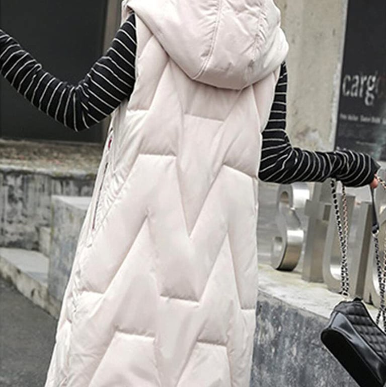 Damen lange modische Weste mit unregelmäßiger Steppung und Kapuze