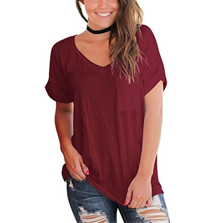 Damen T-Shirt mit kurzen Ärmeln und V-Ausschnitt. Das Shirt hat einen lockeren, bequemen Schnitt und eine Brusttasche. Erhältlich in mehreren Farbvarianten.