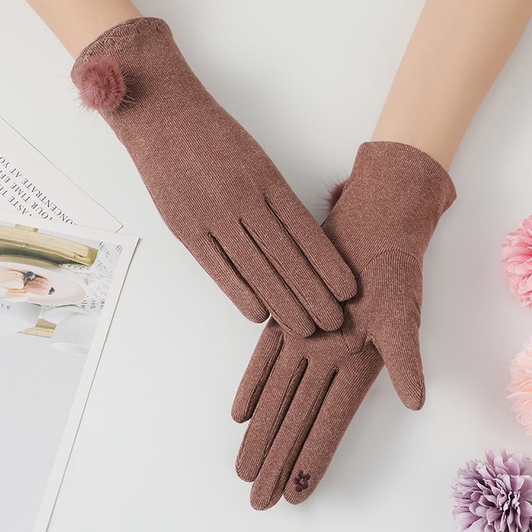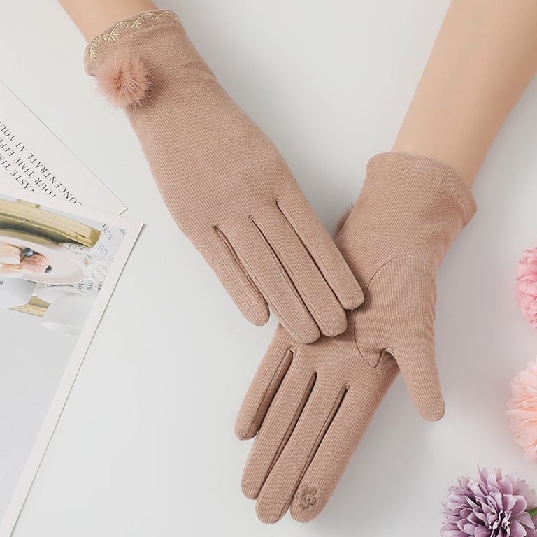 Damen luxuriöse moderne Handschuhe mit Plüschapplikation