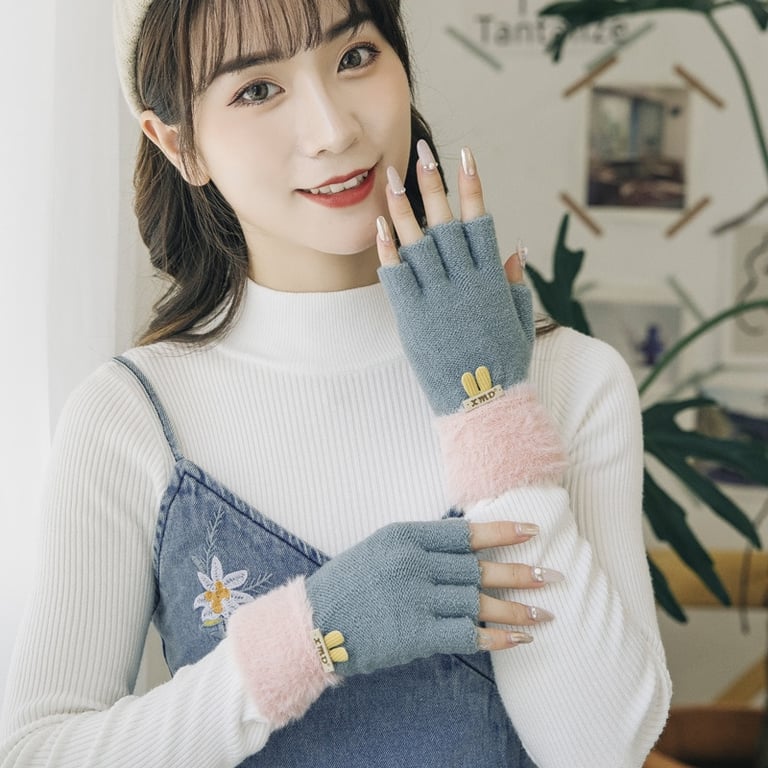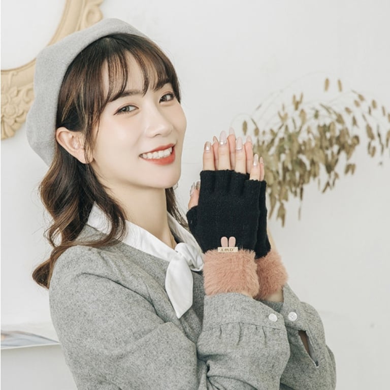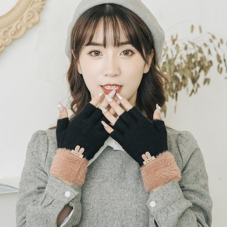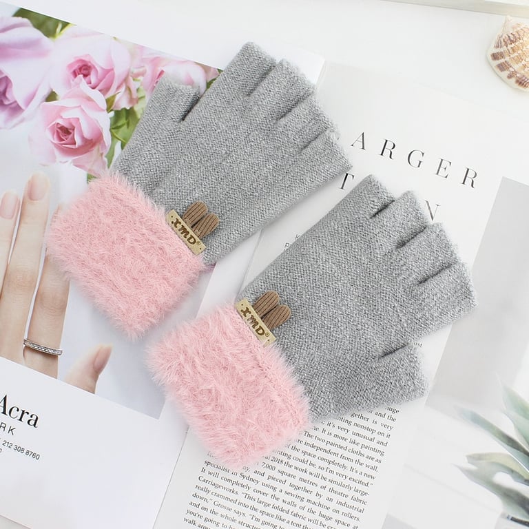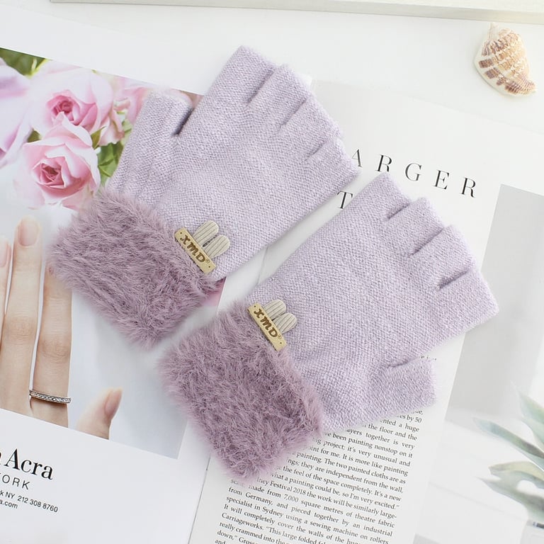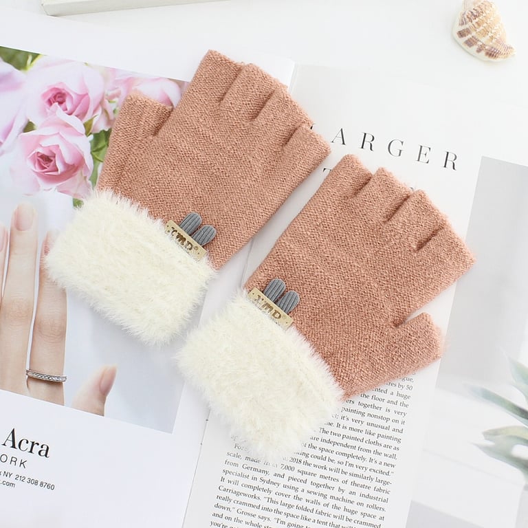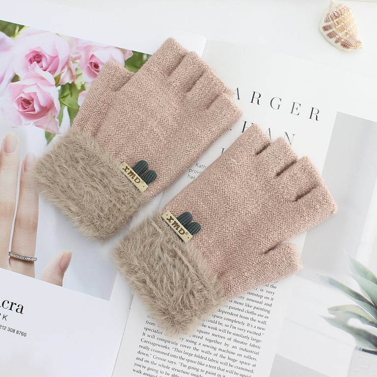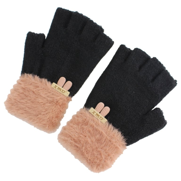 Damen Luxus Halbhandschuhe mit offenen Fingern und plüschigem Futter