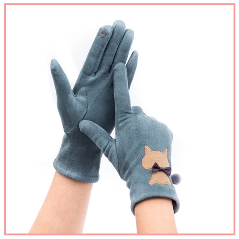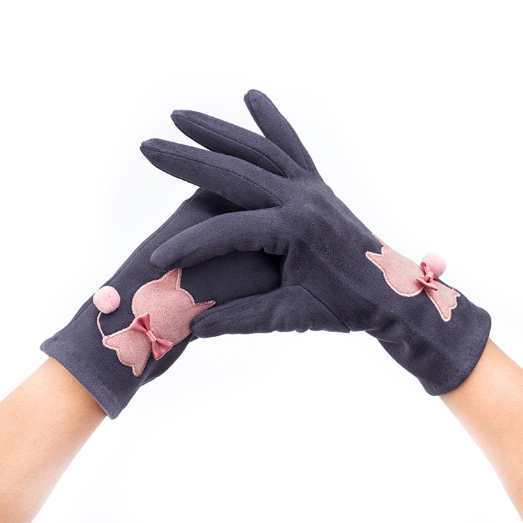 Damen Luxus-Handschuhe mit Katzenapplikation