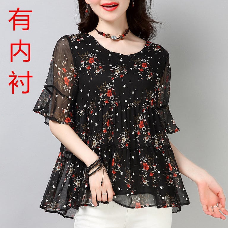 Damen moderne Chiffonbluse mit kurzen Ärmeln