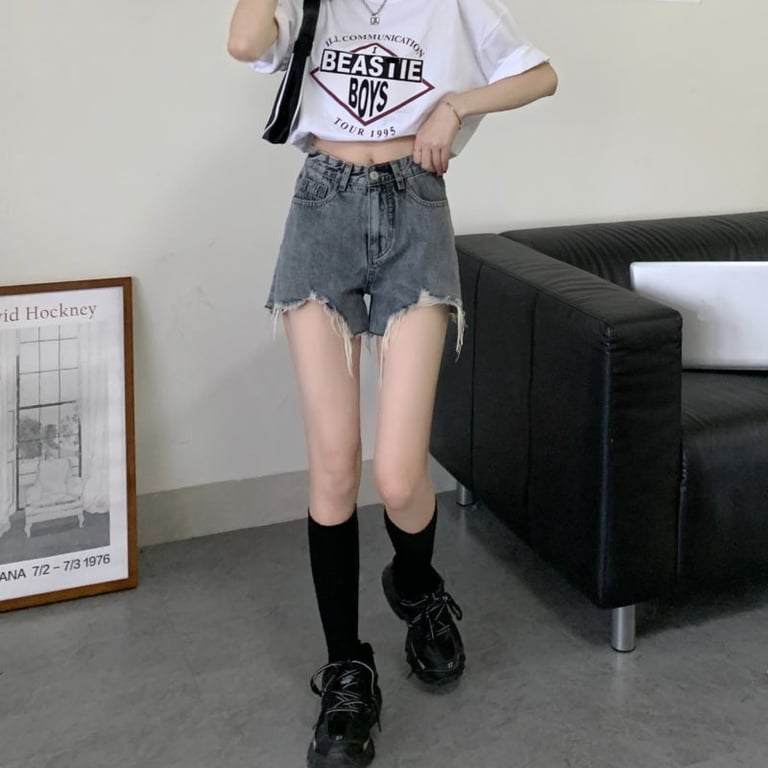 Damen moderne lockere Shorts mit Used-Look