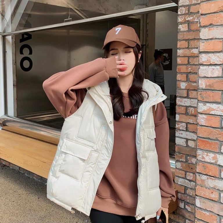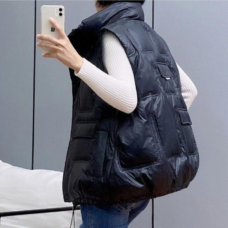 Die modische Oversize-Steppweste ist für jedes trübe Wetter geeignet.