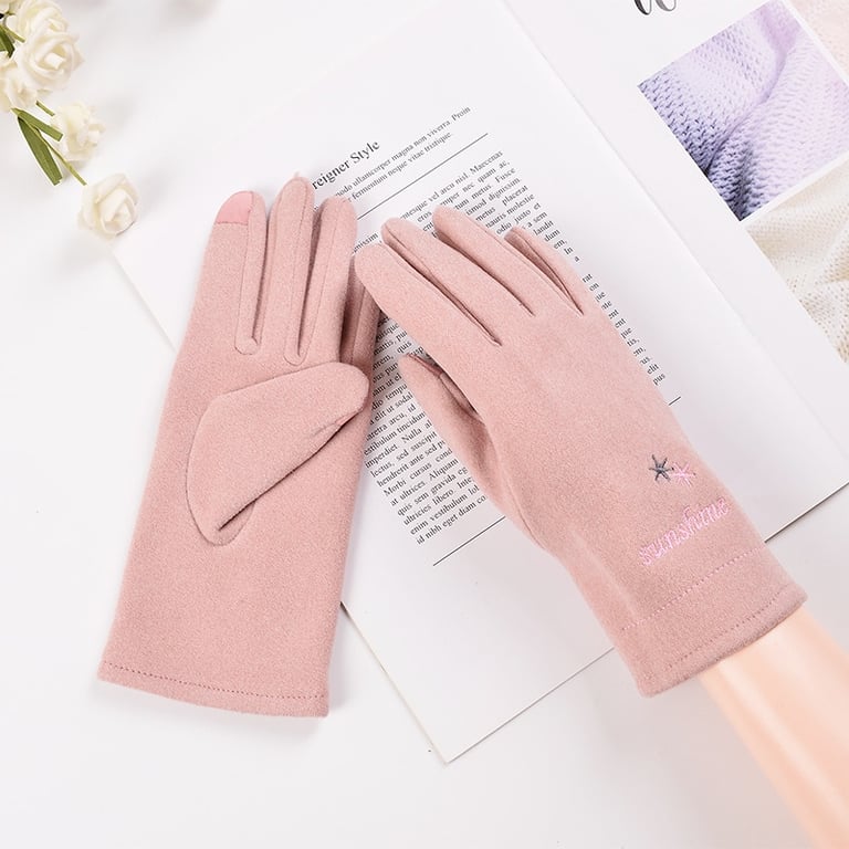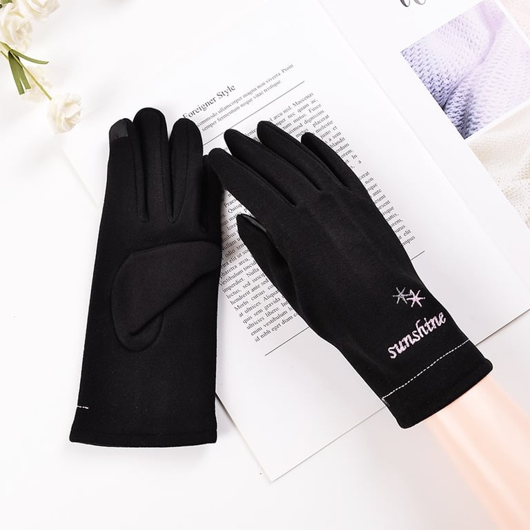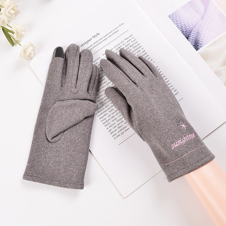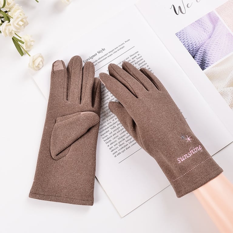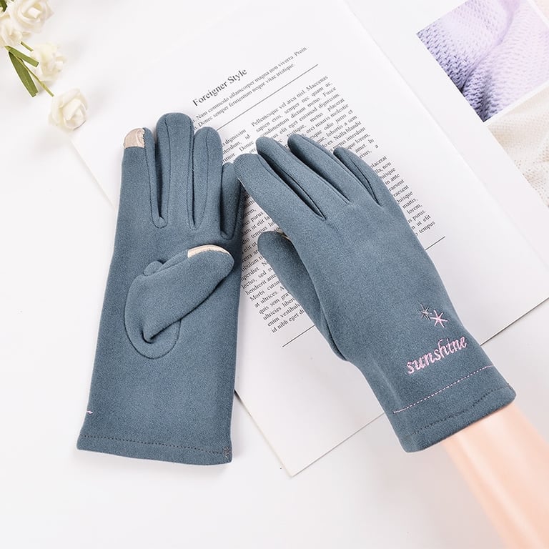 Damen moderne warme Handschuhe mit gesticktem Schriftzug Sunshine