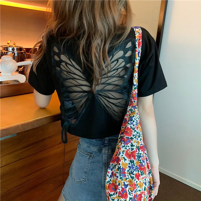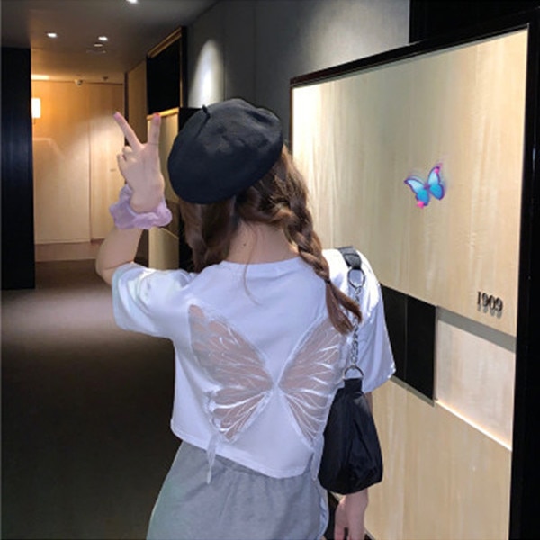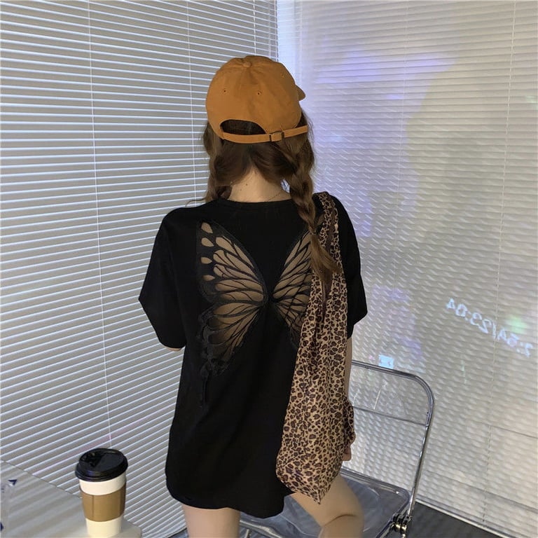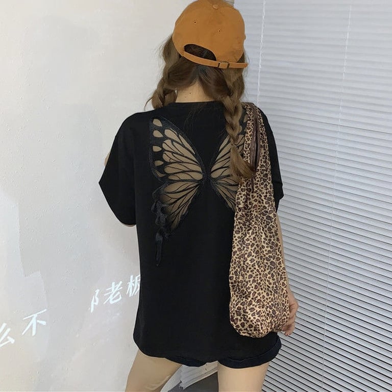 Damen modernes oversized T-Shirt mit Schmetterling auf dem Rücken