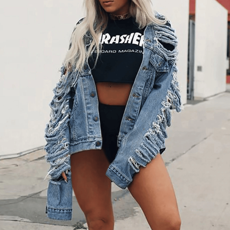 Damen modische stylische zerrissene Jeansjacke.