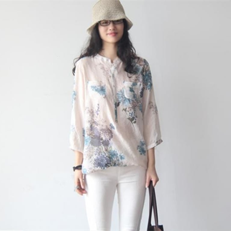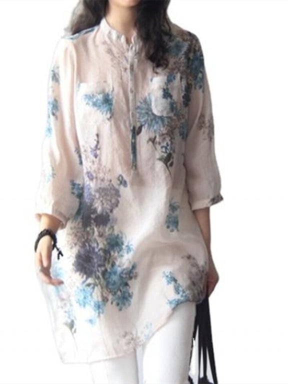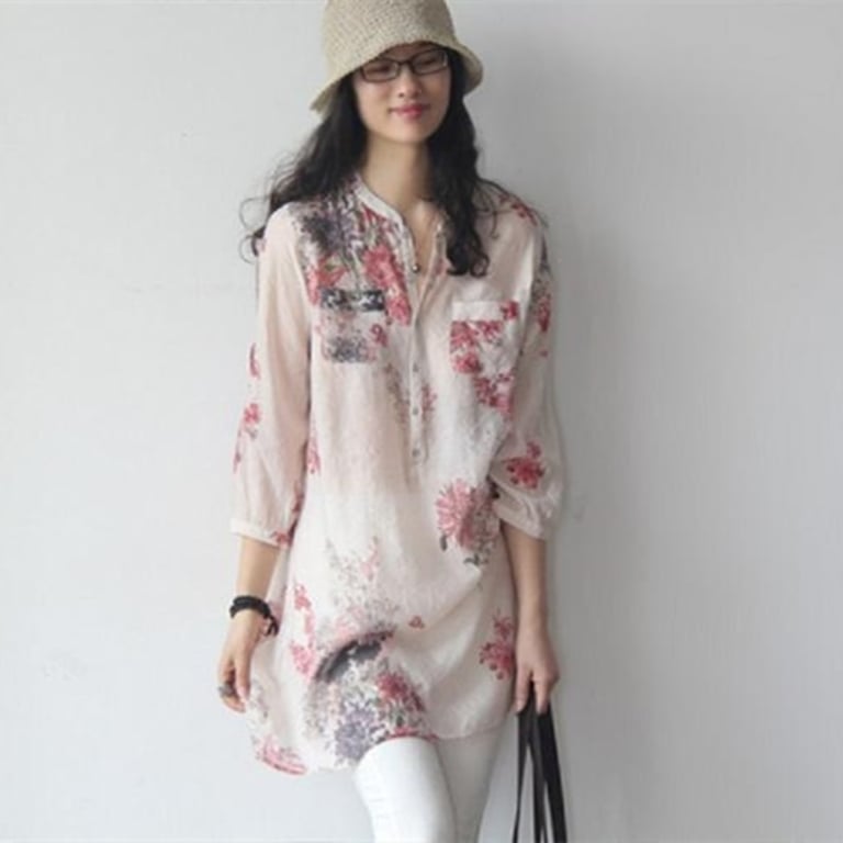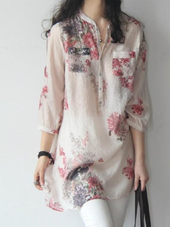 Damen Oversized Langarmbluse mit Blumenmuster
