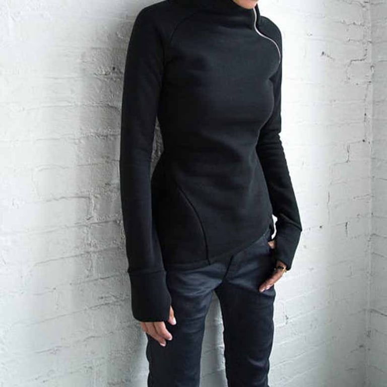 Attraktive Passform, lange Ärmel. Niedriger Rollkragen.