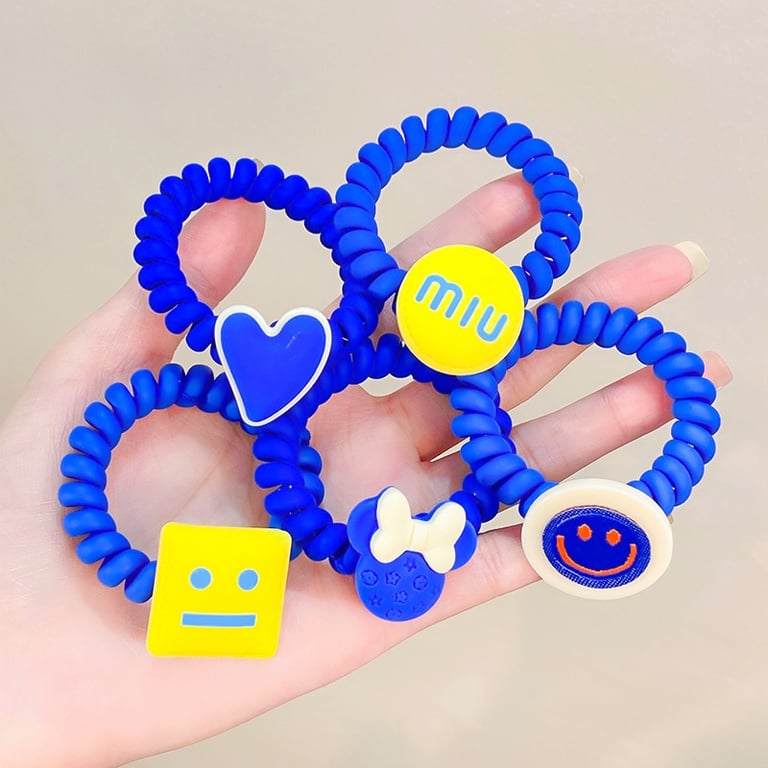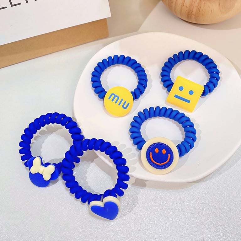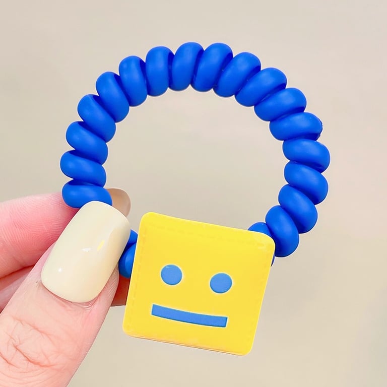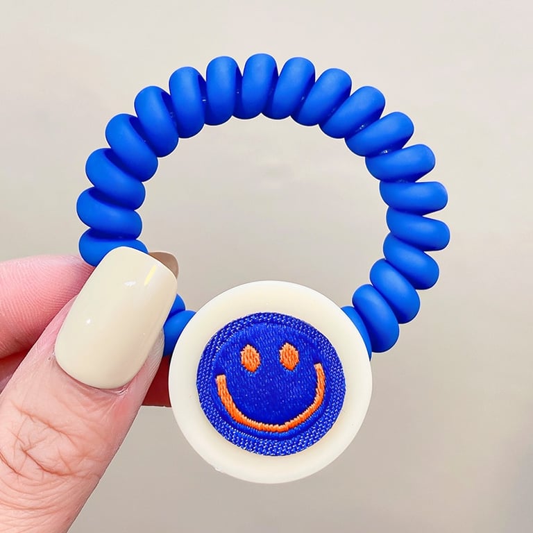 Damen Spiralhaargummi mit niedlichem Smiley – blau