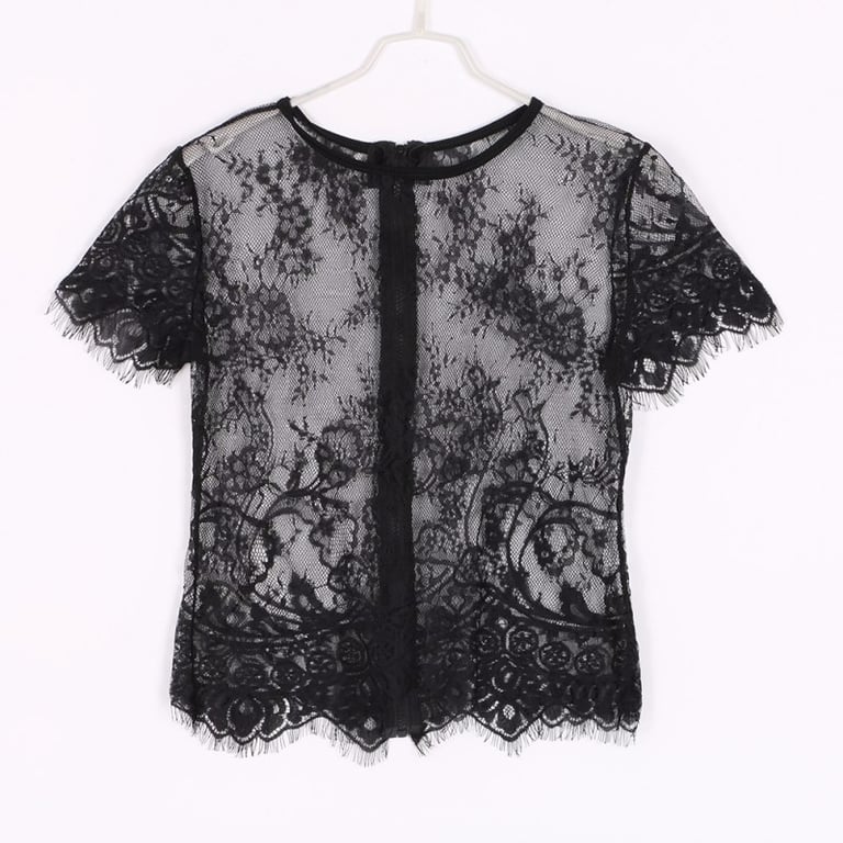 Damen sexy Bluse mit kurzen Ärmeln und Reißverschluss.