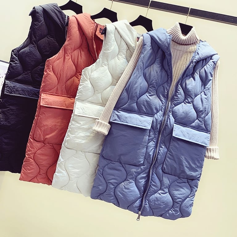 Die modische Steppweste ist für jedes trübe Wetter geeignet.