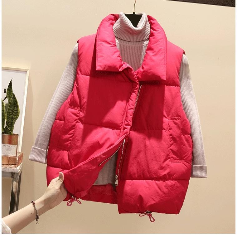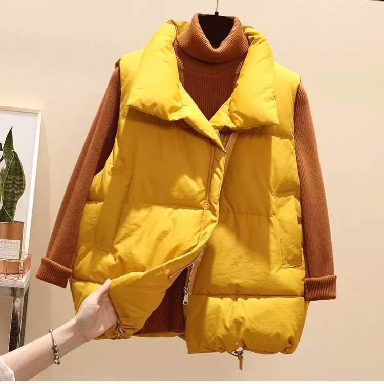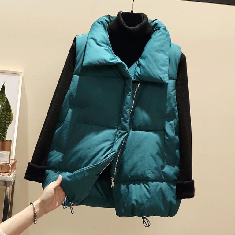 Die modische Steppweste ist für jedes trübe Wetter geeignet.