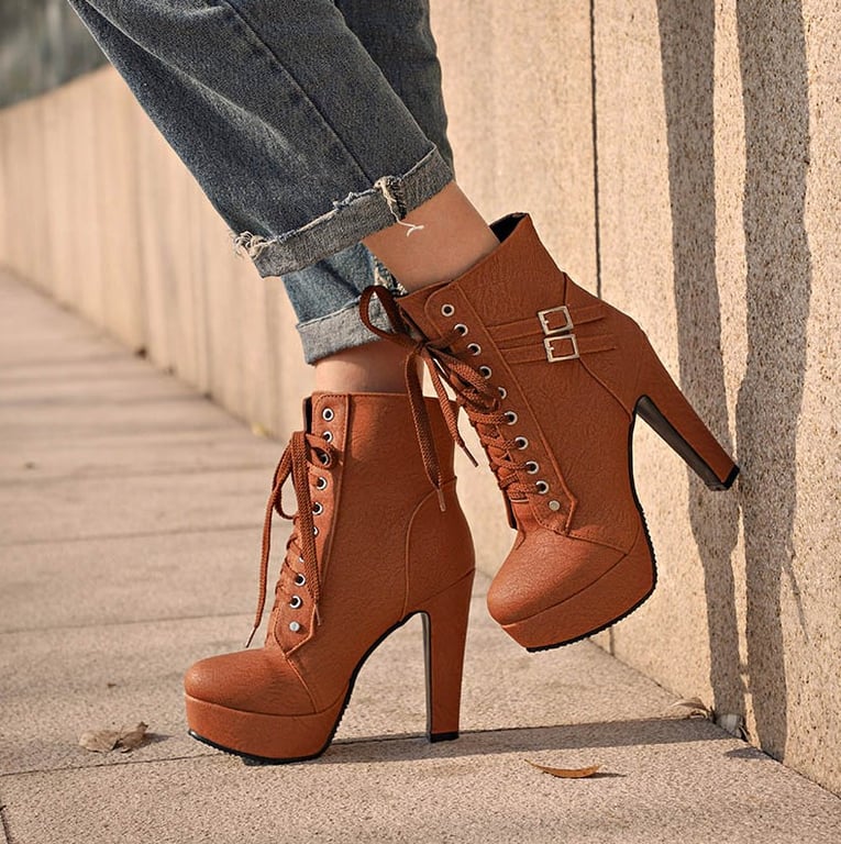 Diese stilvollen Stiefeletten mit Absatz werden Sie lieben. Die Schuhe sind aus hochwertigem Material gefertigt und eher für kühleres Wetter geeignet.