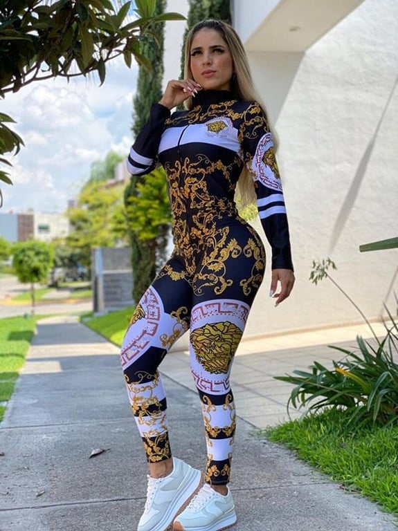 Damenstyliger, figurbetonter Overall mit langen Ärmeln und Druck – Oriental Ornament