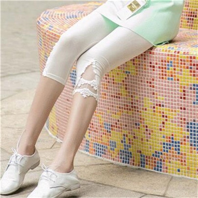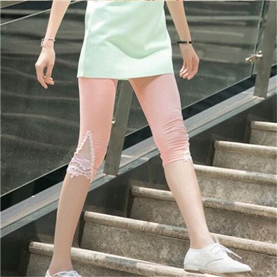 Damen Stretch 3/4 Shorts mit Spitzenabschluss