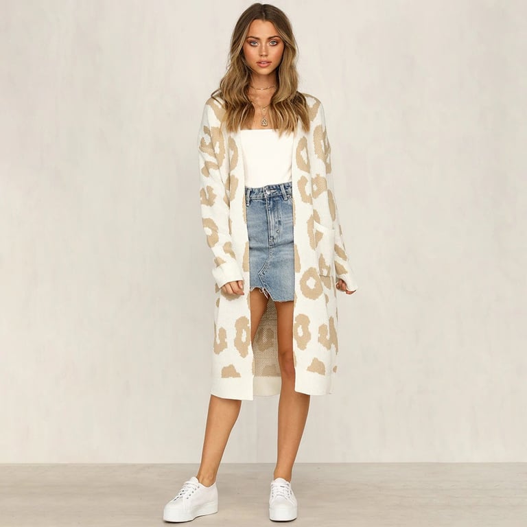 Damen langer, gestrickter Cardigan mit Taschen und modischem Muster.