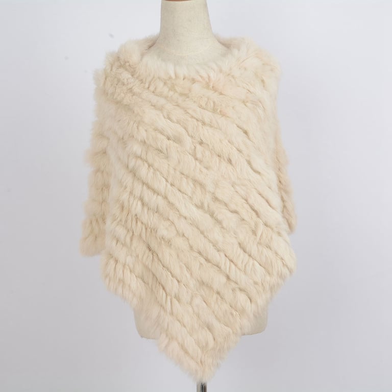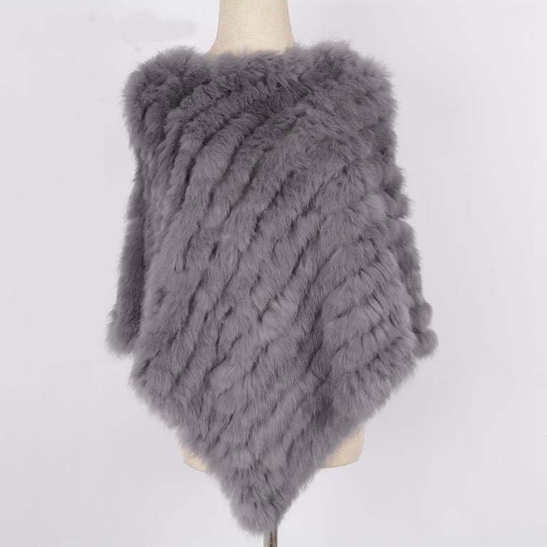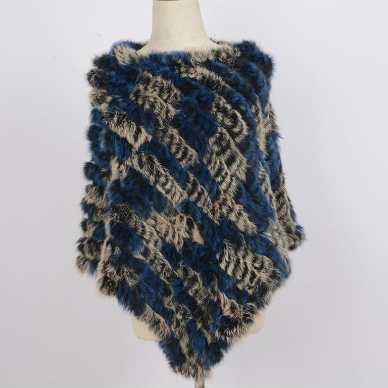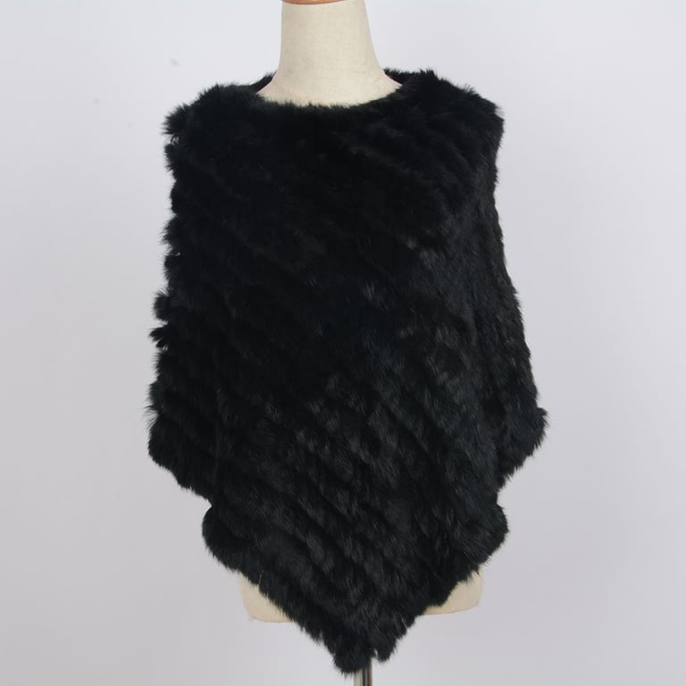 Stylischer Strickponcho Bones mit weichem Kunstfell.
