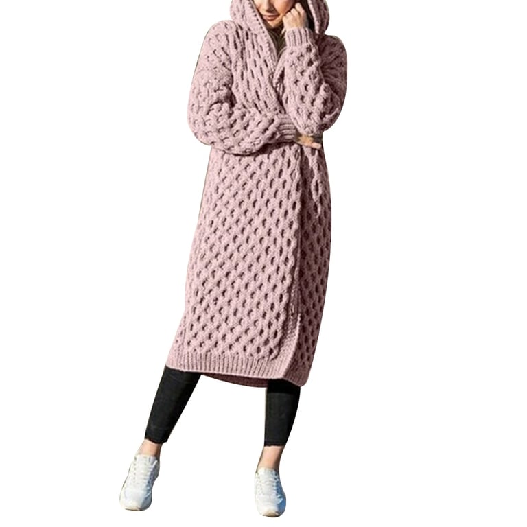 Dieser lange Damen Strickcardigan ist genau das Richtige für ungemütliches, trübes Wetter. Der Pullover hat keinen Verschluss und eine Kapuze.