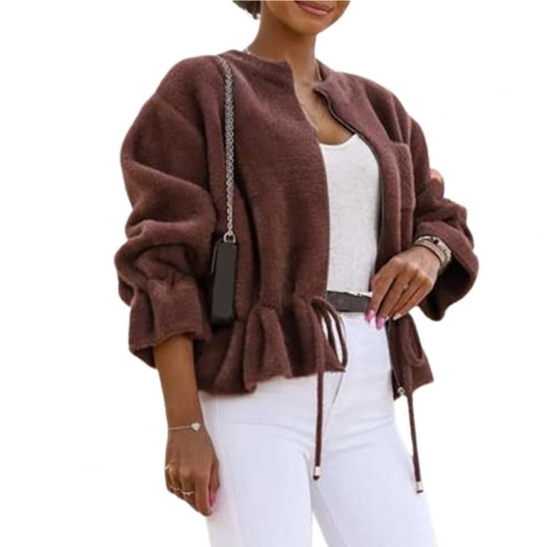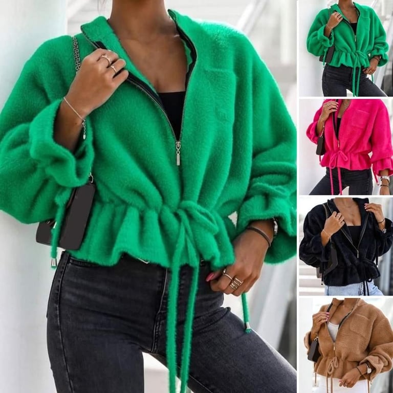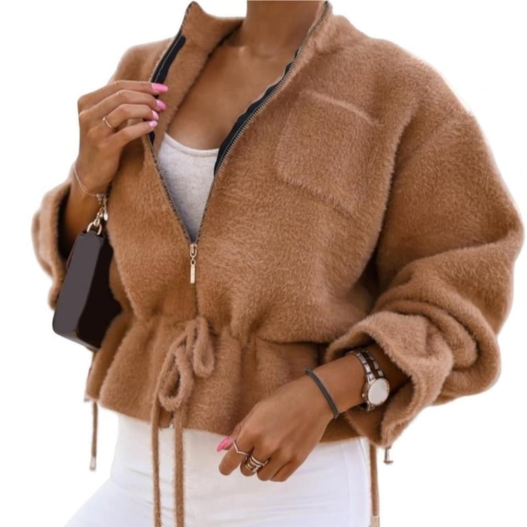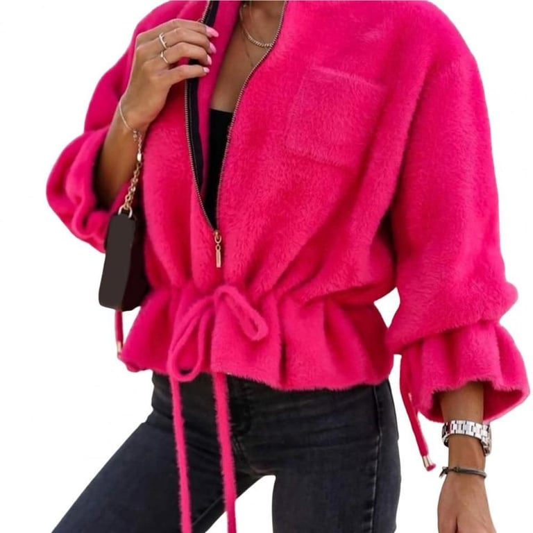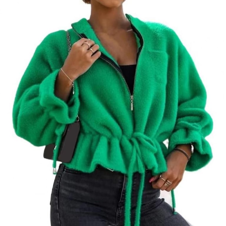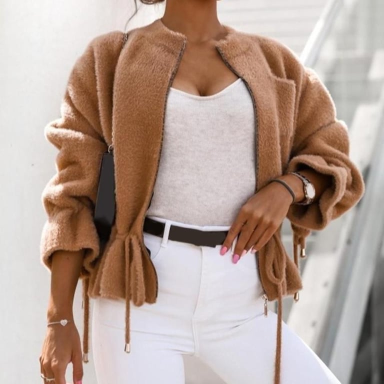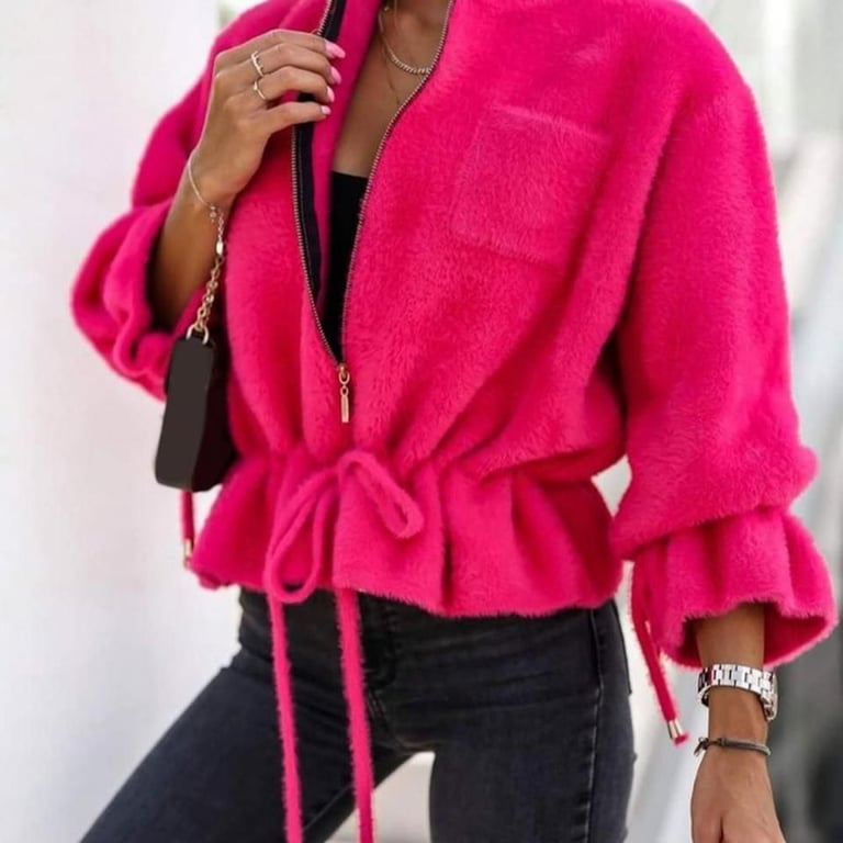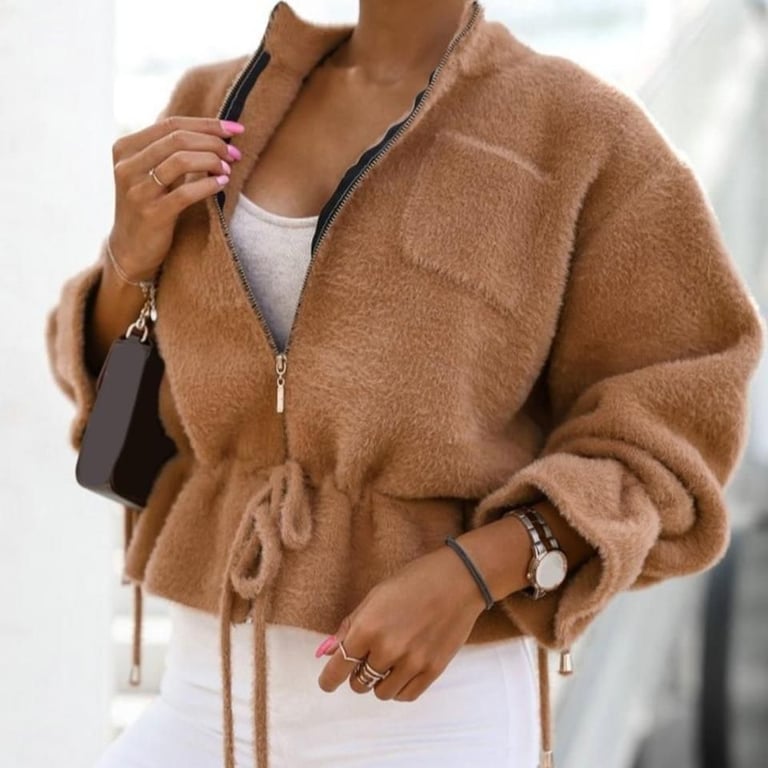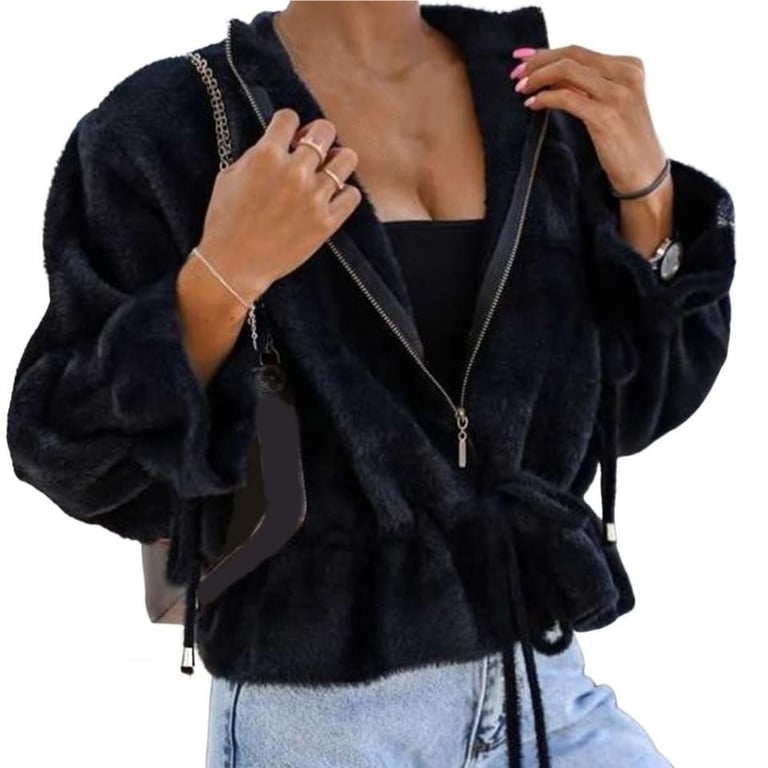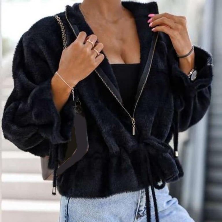 Moderne Damenfelljacke. Die Jacke hat einen originellen Schnitt. Sie ist sehr bequem und weich.