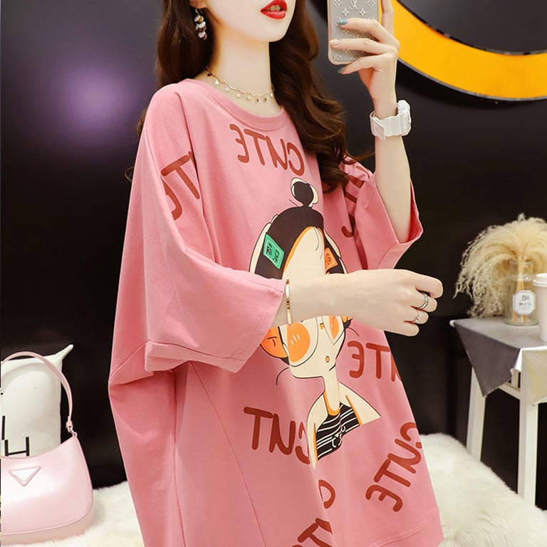 Damen süßes oversized T-Shirt mit Druck