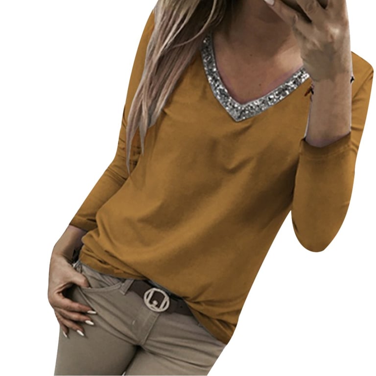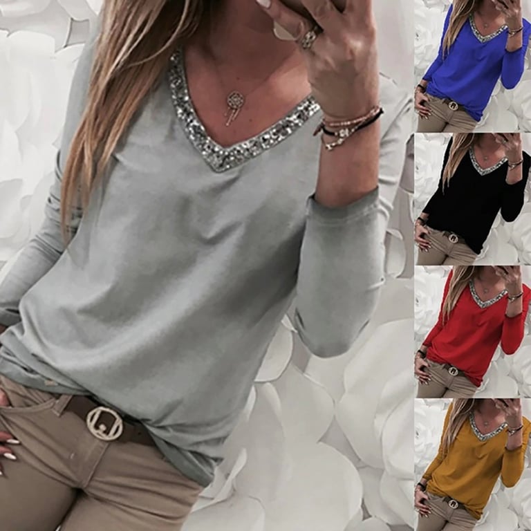 Damen T-Shirt mit langen Ärmeln. Dekolleté mit Pailletten verziert. Handwäsche empfohlen.