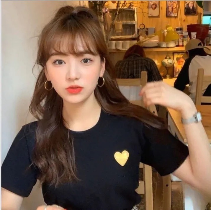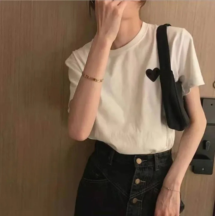 Damen T-Shirt mit Herzstickerei